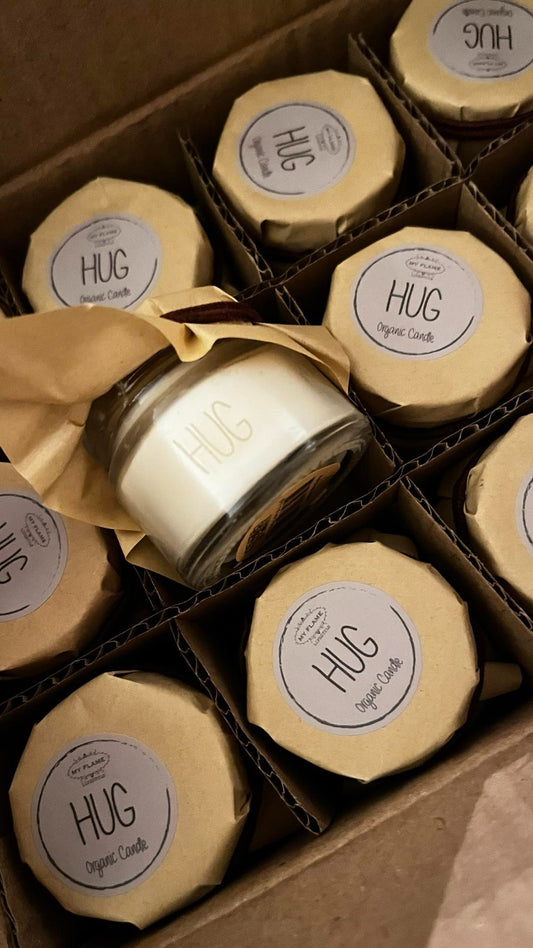 Flessenpost geurkaars - BIG HUGS - Briefje met BIG HUGS - UNLIMITED USES