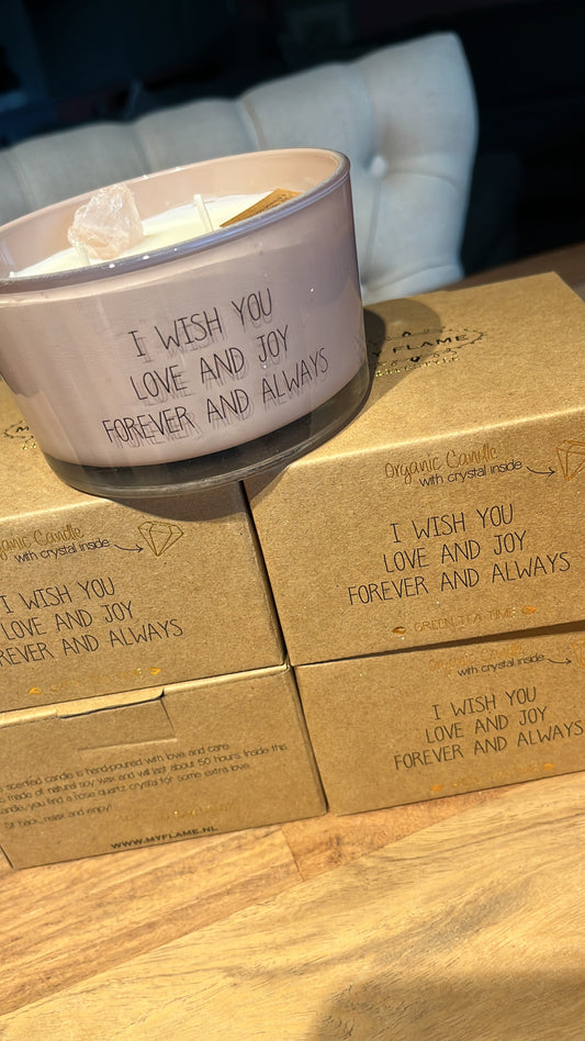 Geurkaars - I WISH YOU LOVE AND JOY FOREVER AND ALWAYS - Rozenkwarts