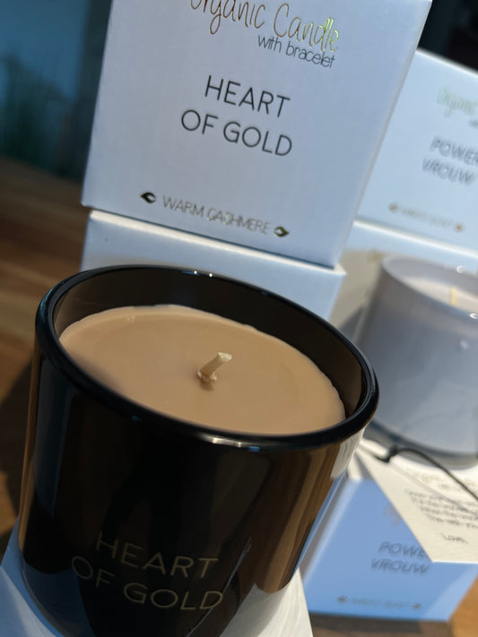 Geurkaars met wens-armbandje - HEART OF GOLD - Warm Cashmere
