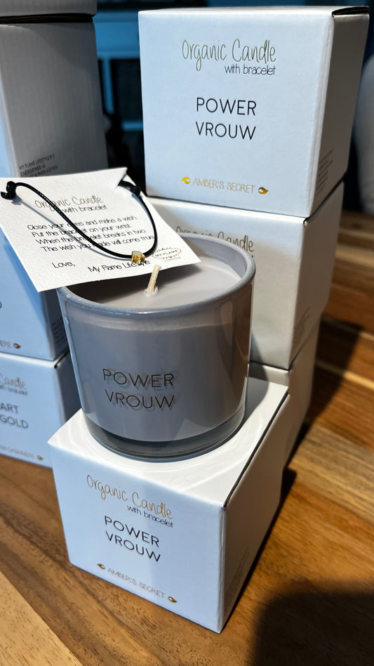 Geurkaars met wens-armbandje - POWERVROUW - Amber's Secret