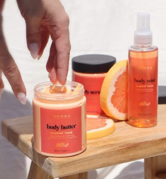 Body Butter ‘Tropical Touch’ met Sheaboter, Aloë Vera en grapefruit.