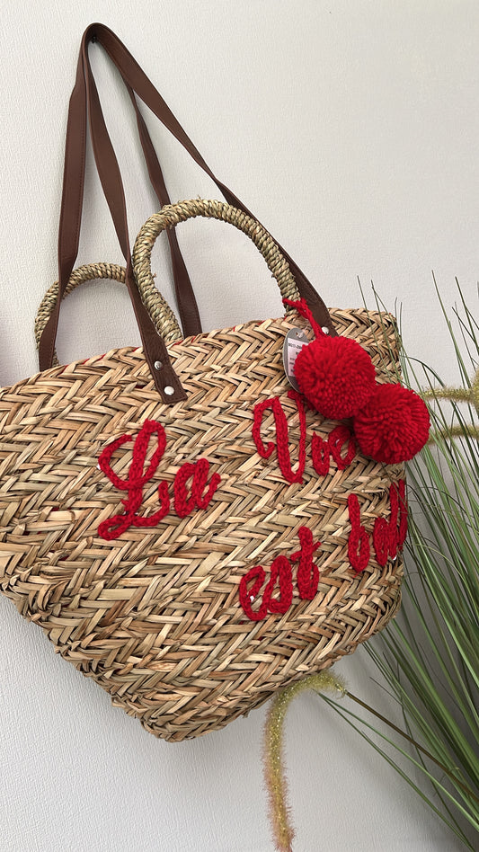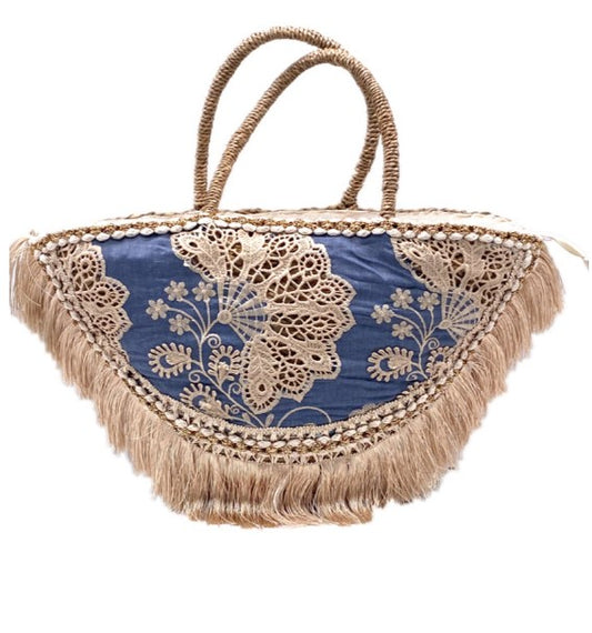 Bohemian Bag in Straw with flower-shaped lace decoration