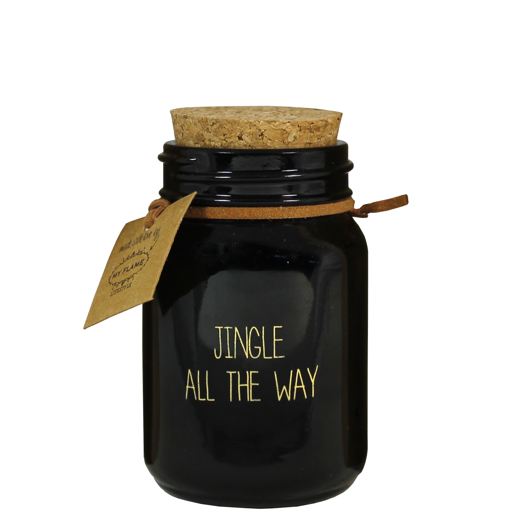 Een heerlijke geurkaars gemaakt van biologische sojawas. Deze kaars heeft de geur Winter Glow en brandt ca. 24 uur. Deze sojakaars wordt gesierd met de tekst 'Jingle all the way'.